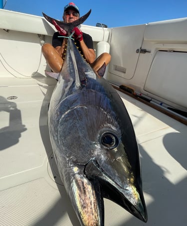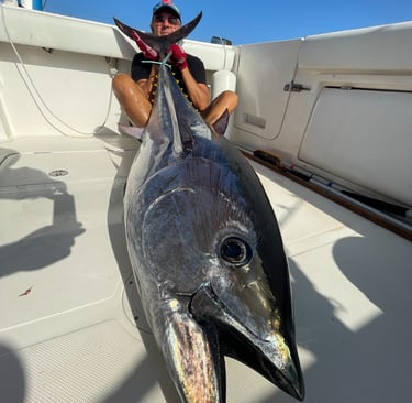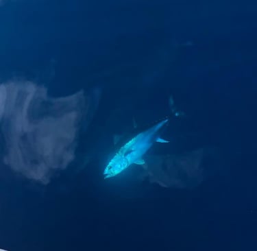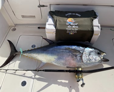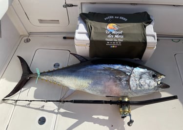 Après environ 20 minutes de navigation, nous atteindrons les zones de pêche, soigneusement choisies selon les conditions du jour. Là, l’aventure commence vraiment : thons, bonites, liches ou autres poissons puissants pourront croiser votre ligne.