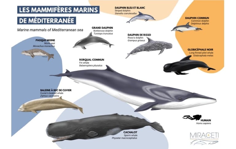 Découvrez les dauphins, cachalots, tortues et autres poissons que l’on croise en Méditerranée.